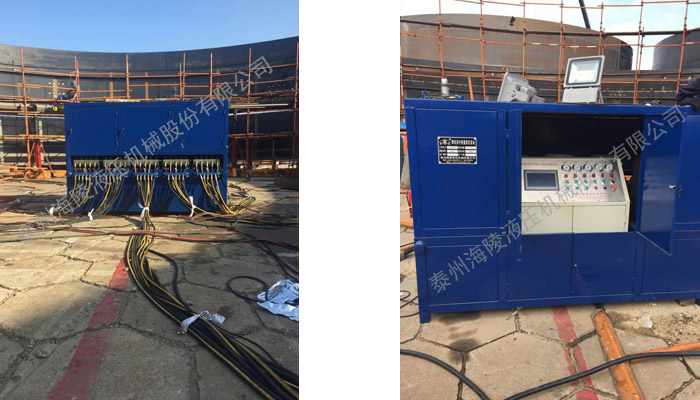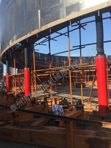 我公司生產(chǎn)制作的成套倒裝提升液壓設(shè)備即儲(chǔ)罐安裝設(shè)備,主要用于協(xié)助各種大型儲(chǔ)罐、氣柜、電廠脫硫塔等鋼結(jié)構(gòu)、大型重物的倒裝提升焊接安裝。