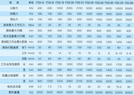 四立柱液壓機(jī)YTD32系列: