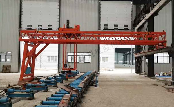 2、行走航架通過行走電機(jī)驅(qū)動(dòng)減速機(jī)帶動(dòng)鋼軌輪旋轉(zhuǎn),該電機(jī)帶剎車,可在任意位置剎車并停止行走。
